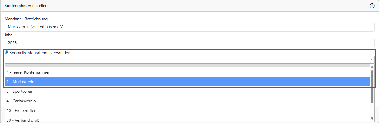 Wählen Sie den passenden Kontenrahmen aus.