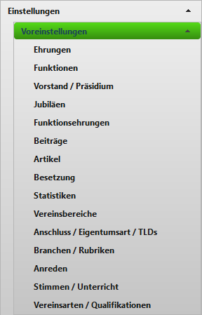 Passen Sie als erstes die Register "Vereinsbereiche", "Funktionen", "Beiträge" und "Besetzung" auf Ihren Verein an.