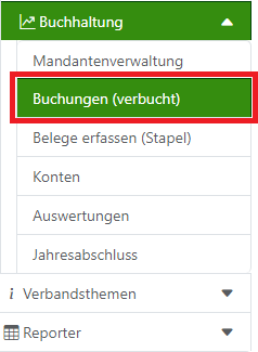 Wenn verbuchte Belege Fehler enthalten, können sie nicht mehr korrigiert, sondern müssen storniert werden. Dies machen Sie in der Buchhaltung im Reiter "Buchungen (verbucht)".