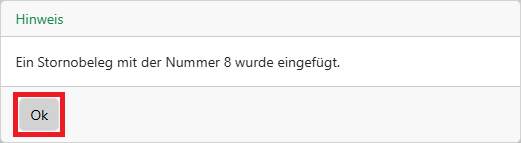 Der Stornotbeleg wird angelegt und Sie können die Bestätigung dazu mit schließen.