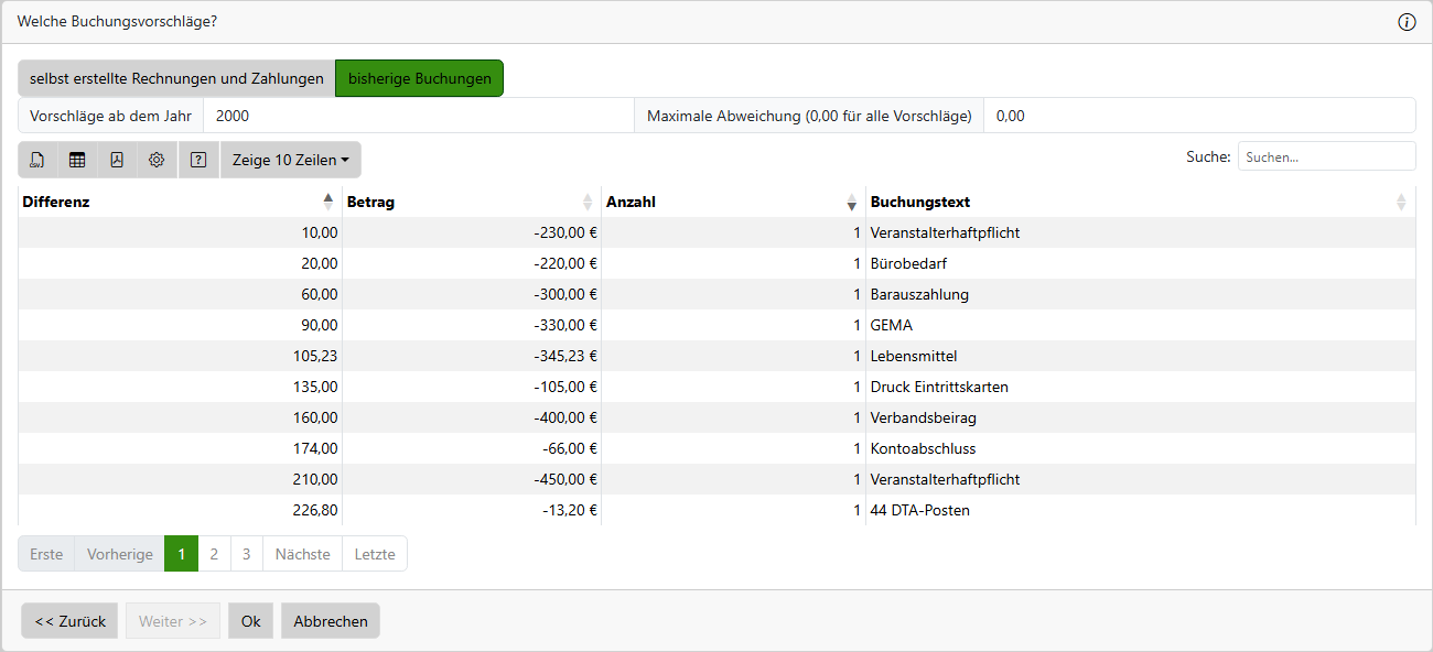 Wenn Sie auf diesen Schalter klicken, können Sie einen Buchungsvorschlag aus den bisherigen Buchungen übernehmen.
