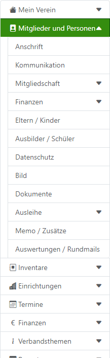 Sobald Sie einen Menüppunkt angeklickt haben, klappt dieser auf. Menüpunkte zum Aufklappen erkennen Sie am Symbol