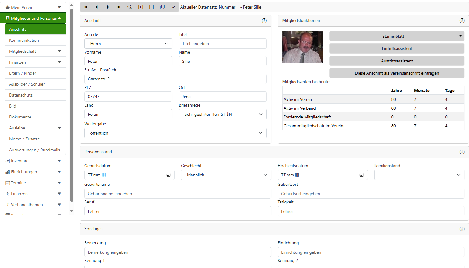 Wenn Sie dann in innerhalb einer Verwaltung einen Menüpunkt anklicken, der kein Zeichen zum Aufklappen hat, öffnet sich das passende Register.