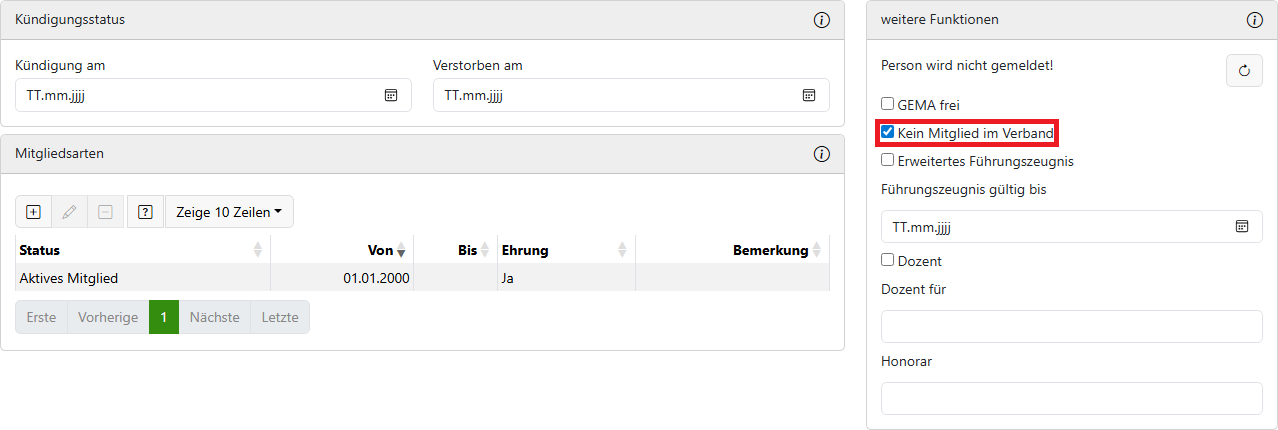 Beispiel 4: Aktives Mitglied - Kein Mitglied im Verband