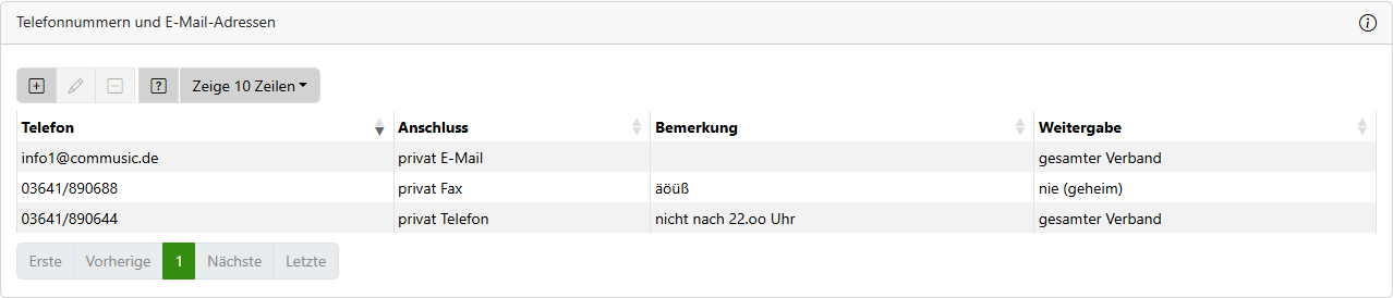 Telefonnummern und E-Mail-Adressen