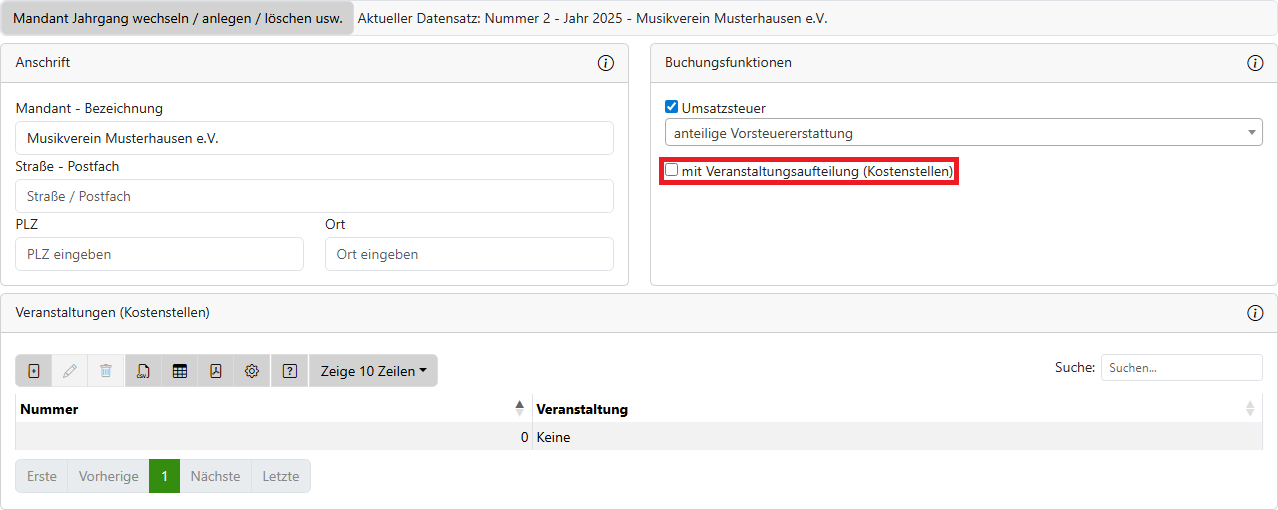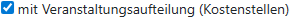 Aktiviert, dass man in den Belegen eine Veranstaltung aus den Voreinstellungen zuordnen kann.