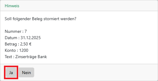 Der Stornotbeleg wird angelegt und Sie können die Bestätigung dazu mit schließen.