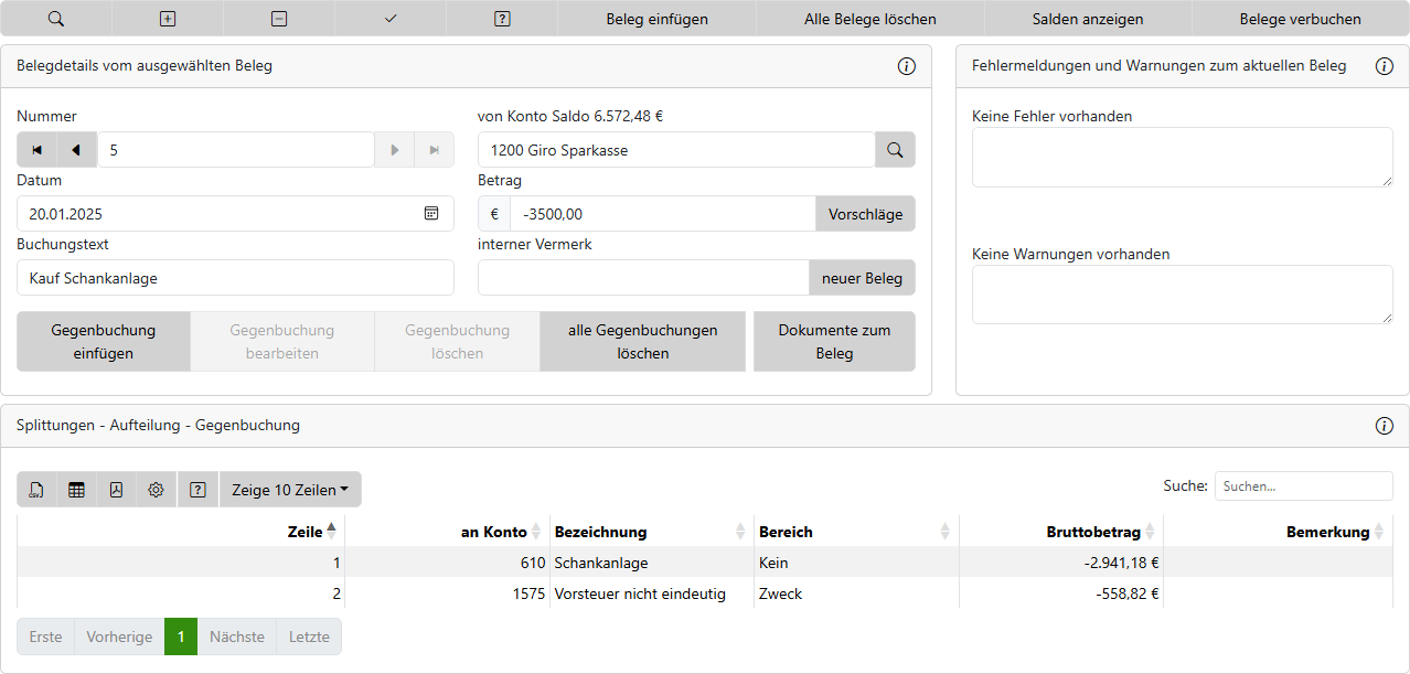 Das Konto muss zum Eröffnen im Kontenrahmen angelegt werden. Der Verein hat eine Schankanlage für 3500,00 € Brutto gekauft.