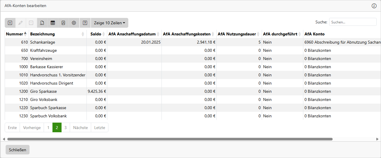 AfA Konten bearbeiten