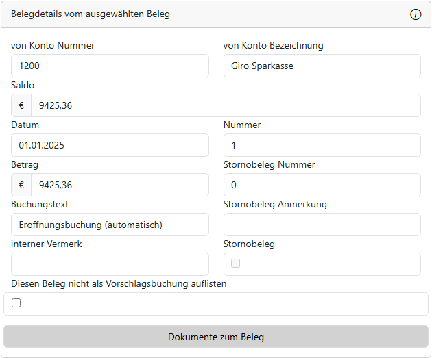 Belegdetails vom ausgewählten Beleg