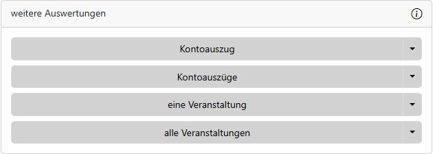 Hier können Sie Kontoauszüge ziehen und Veranstaltungen auswerten.